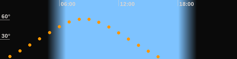 | Höchster Stand (Kulmination) | 08:28 Uhr (h = 61,4°) |