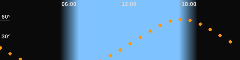 | Höchster Stand (Kulmination) | 18:08 Uhr (h = 61,4°) |
