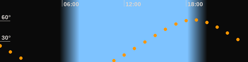 | Höchster Stand (Kulmination) | 18:41 Uhr (h = 61,4°) |
