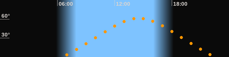 | Höchster Stand (Kulmination) | 14:31 Uhr (h = 61,4°) |