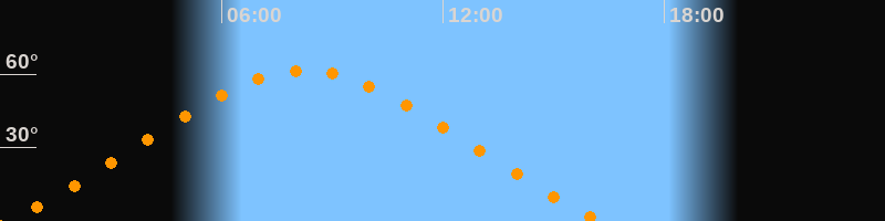 | Höchster Stand (Kulmination) | 08:15 Uhr (h = 61,4°) |