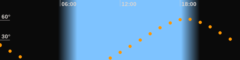 | Höchster Stand (Kulmination) | 18:34 Uhr (h = 61,4°) |