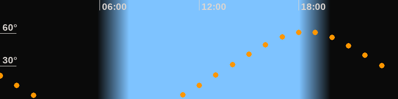 | Höchster Stand (Kulmination) | 18:26 Uhr (h = 61,4°) |