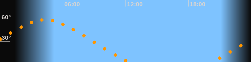 | Untergang | 12:20 Uhr im Nordwesten (αAz = 307,4°) |