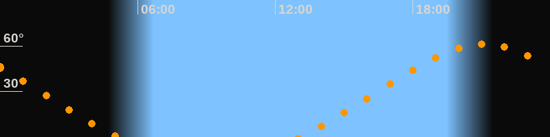 | Untergang | 05:11 Uhr im Nordwesten (αAz = 307,4°) |
