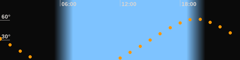 | Höchster Stand (Kulmination) | 19:34 Uhr (h = 61,4°) |