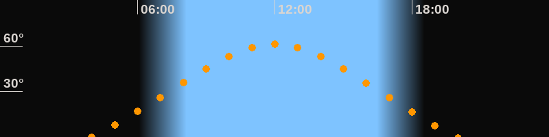 | Höchster Stand (Kulmination) | 11:59 Uhr (h = 61,4°) |