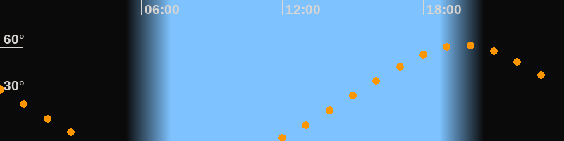 | Höchster Stand (Kulmination) | 19:41 Uhr (h = 61,4°) |
