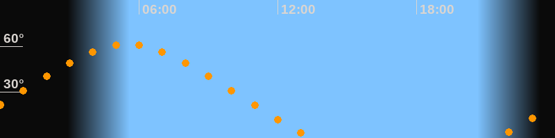 | Höchster Stand (Kulmination) | 05:30 Uhr (h = 61,4°) |