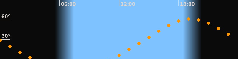 | Höchster Stand (Kulmination) | 19:13 Uhr (h = 61,4°) |