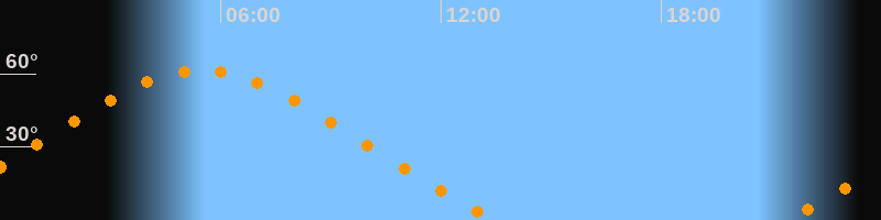 | Höchster Stand (Kulmination) | 05:29 Uhr (h = 61,4°) |