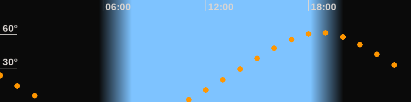 | Höchster Stand (Kulmination) | 18:41 Uhr (h = 61,4°) |
