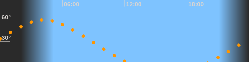 | Untergang | 12:14 Uhr im Nordwesten (αAz = 307,4°) |