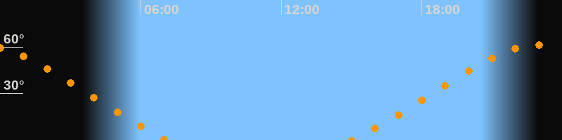 | Untergang | 07:09 Uhr im Nordwesten (αAz = 307,4°) |
