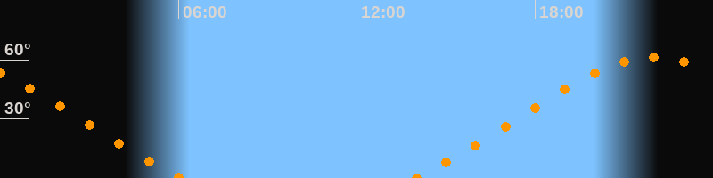 | Höchster Stand (Kulmination) | 21:59 Uhr (h = 61,4°) |