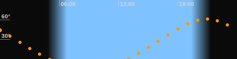 | Aufgang | 12:50 Uhr im Nordosten (αAz = 52,6°) |