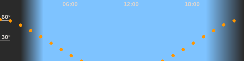 | Untergang | 08:04 Uhr im Nordwesten (αAz = 307,4°) |