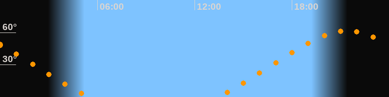 | Untergang | 05:30 Uhr im Nordwesten (αAz = 307,4°) |