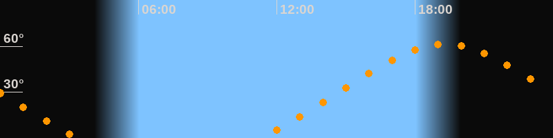 | Höchster Stand (Kulmination) | 19:18 Uhr (h = 61,4°) |