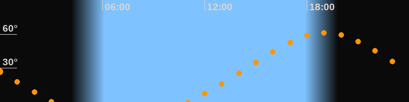 | Höchster Stand (Kulmination) | 19:02 Uhr (h = 61,4°) |