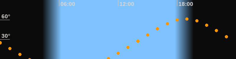 | Höchster Stand (Kulmination) | 18:50 Uhr (h = 61,4°) |