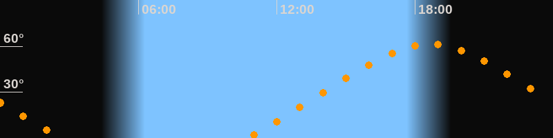 | Höchster Stand (Kulmination) | 18:39 Uhr (h = 61,4°) |