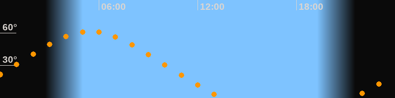 | Höchster Stand (Kulmination) | 05:28 Uhr (h = 61,4°) |