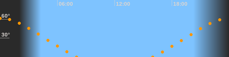 | Untergang | 08:06 Uhr im Nordwesten (αAz = 307,4°) |