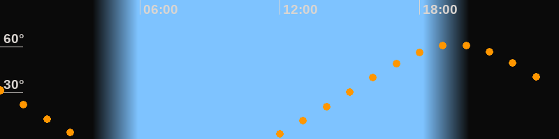 | Höchster Stand (Kulmination) | 19:32 Uhr (h = 61,4°) |