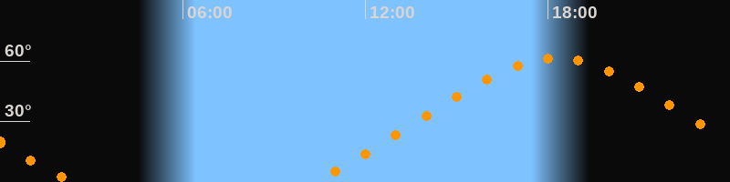 | Höchster Stand (Kulmination) | 18:17 Uhr (h = 61,4°) |