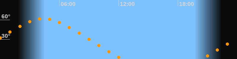 | Höchster Stand (Kulmination) | 04:23 Uhr (h = 61,4°) |