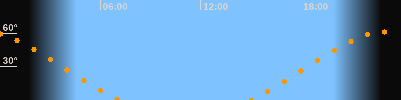 | Untergang | 07:08 Uhr im Nordwesten (αAz = 307,4°) |