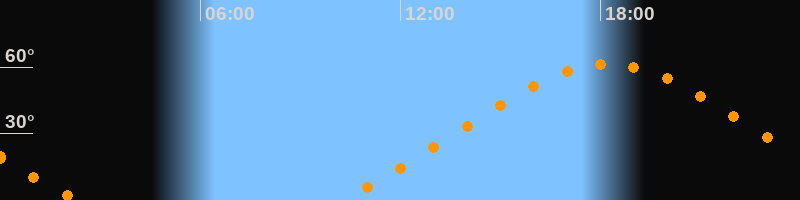 | Höchster Stand (Kulmination) | 18:14 Uhr (h = 61,4°) |