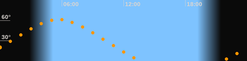 | Höchster Stand (Kulmination) | 05:39 Uhr (h = 61,4°) |