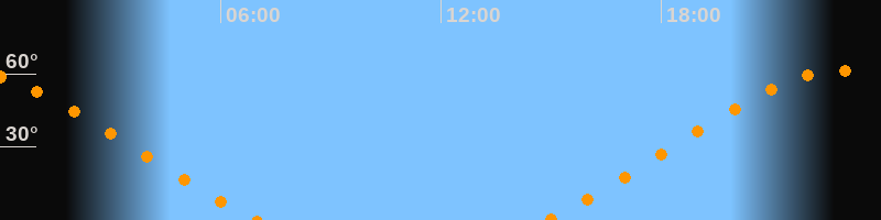 | Untergang | 07:01 Uhr im Nordwesten (αAz = 307,4°) |
