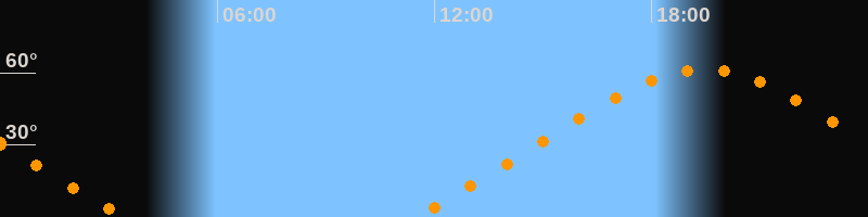 | Aufgang | 11:23 Uhr im Nordosten (αAz = 52,6°) |