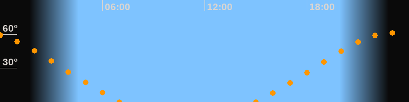 | Untergang | 07:05 Uhr im Nordwesten (αAz = 307,4°) |