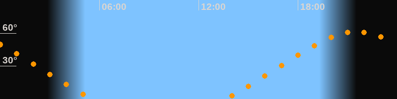 | Aufgang | 13:30 Uhr im Nordosten (αAz = 52,6°) |