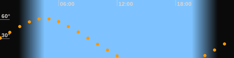 | Höchster Stand (Kulmination) | 04:30 Uhr (h = 61,4°) |