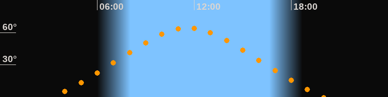 | Höchster Stand (Kulmination) | 11:37 Uhr (h = 64,4°) |
