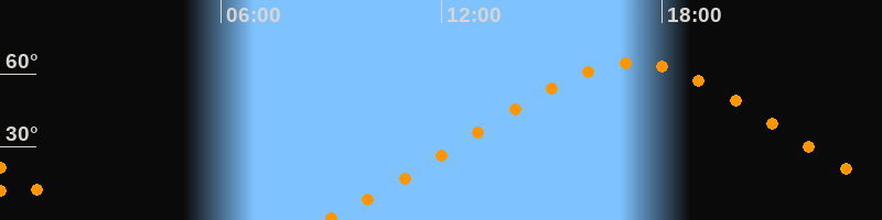 Höchster Stand (Kulmination)17:12 Uhr (h = 64,4°)