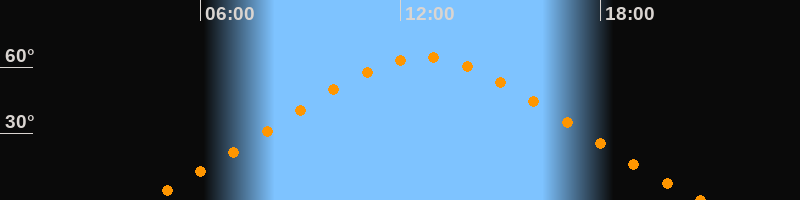 | Höchster Stand (Kulmination) | 12:41 Uhr (h = 64,4°) |