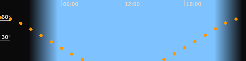 | Untergang | 08:23 Uhr im Nordwesten (αAz = 313,1°) |