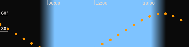 Aufgang12:09 Uhr im Nordosten (αAz = 46,9°)