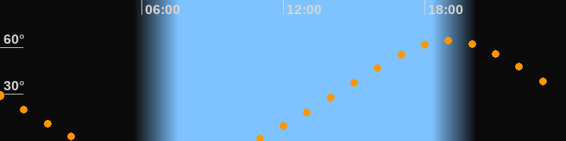 Höchster Stand (Kulmination)19:03 Uhr (h = 64,4°)