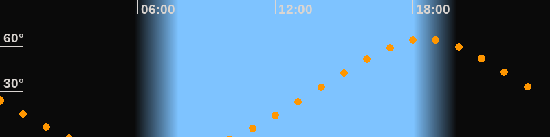 Höchster Stand (Kulmination)18:31 Uhr (h = 64,4°)