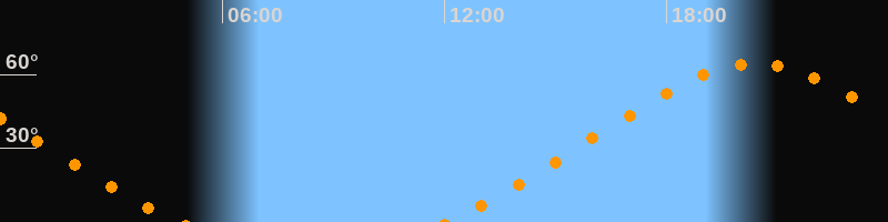 | Aufgang | 12:01 Uhr im Nordosten (αAz = 46,9°) |