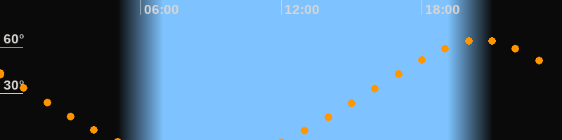 | Aufgang | 12:05 Uhr im Nordosten (αAz = 46,9°) |