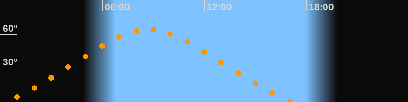 | Höchster Stand (Kulmination) | 08:43 Uhr (h = 64,4°) |
