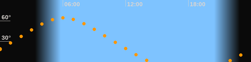 | Höchster Stand (Kulmination) | 06:03 Uhr (h = 64,4°) |